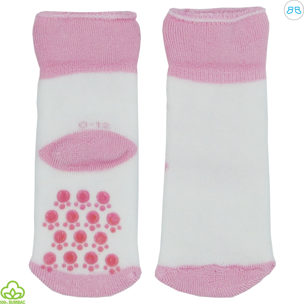 Sosete flausate bebelusi din bumbac, antiderapante, alb-roz, 0-12 luni